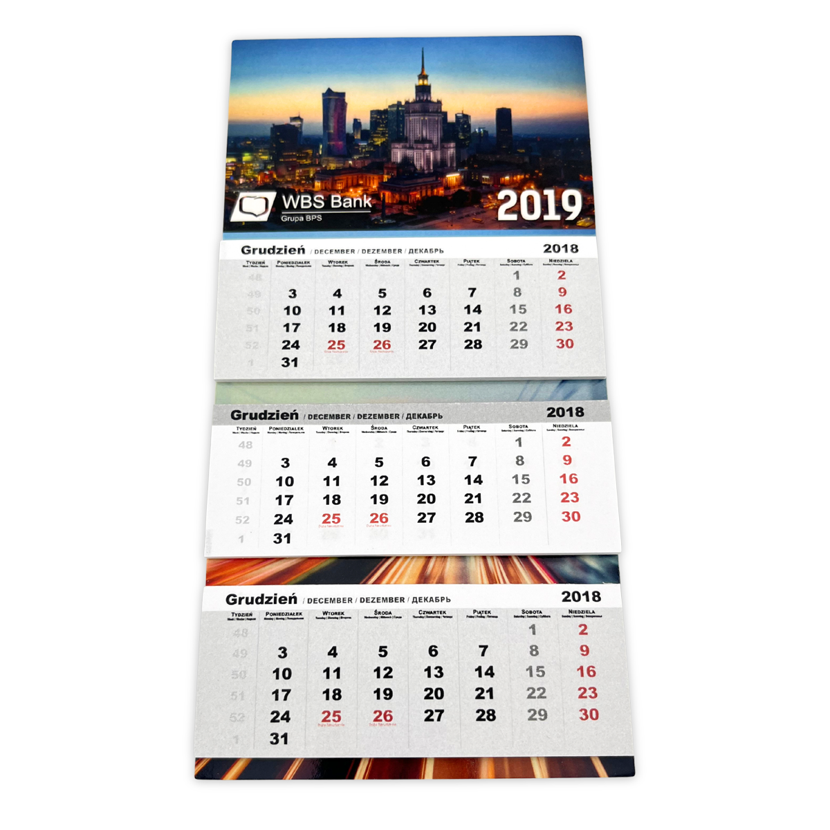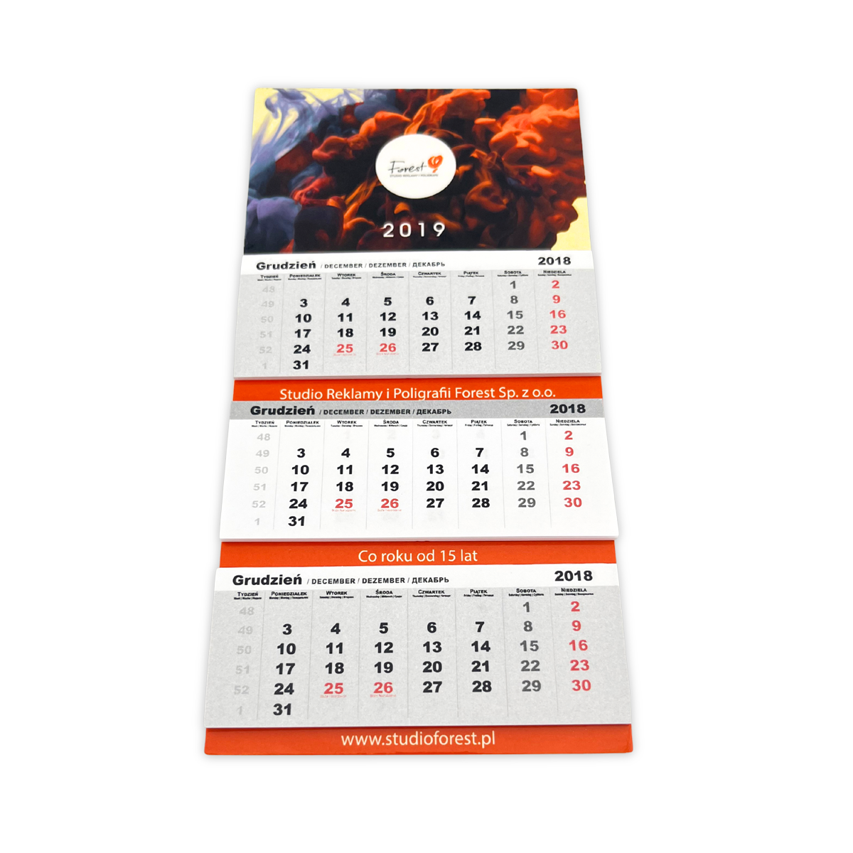 Trójdzielny kalendarz magnetyczny z trzema bloczkami to funkcjonalny kalendarz na lodówkę lub tablicę, który umożliwia jednoczesny podgląd trzech miesięcy: bieżącego, poprzedniego i kolejnego. Z tyłu znajduje się solidny magnes, dzięki czemu kalendarz dobrze trzyma się powierzchni. Ten typ kalendarza jest szczególnie ceniony w biurach, firmach i domach, gdzie ważne jest długoterminowe planowanie. Idealny również jako kalendarz firmowy lub promocyjny.